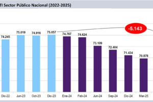 Por otro lado, en el ámbito de las empresas y sociedades del sector público nacional también se observa una significativa y continua declinación en el empleo registrado entre diciembre 2023 y septiembre 2025. En este caso, el ranking de la pérdida de empleo lo encabeza la operadora de las centrales nucleares NASA (-221) que sufrió una acelerada reducción de personal en los últimos meses. La sigue muy de cerca FADEA (-220) que vive un continu descenso, al igual que la empresa satelital ARSAT (-124). Luego viene la empresa de servicios y desarrollos tecnológicos para la actividad espacial VENG (-80) y Dioxitek (-58), compañía que produce insumos esenciales para el sector nuclear.
