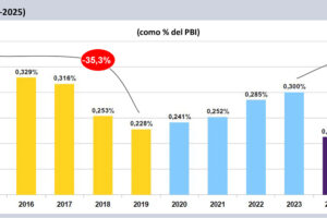 La gravedad de la situación cobra su real dimensión al observar la evolución de la relación de la Función CyT con el PBI. Allí se indica que en 2025 ese guarismo desciende hasta un 0,164%, lo que implica un mínimo absoluto en la serie histórica, aún por debajo del 0,177% del 2002. Si tenemos en cuenta que en 2023, se había alcanzado el 0,30% del producto, la caída en el último bienio alcanza el -45,3% en su incidencia sobre el PBI. Este descenso representa un ajuste mucho mayor al realizado por el macrismo entre 2015 y 2019 cuando el derrumbe fue del -35,3%.