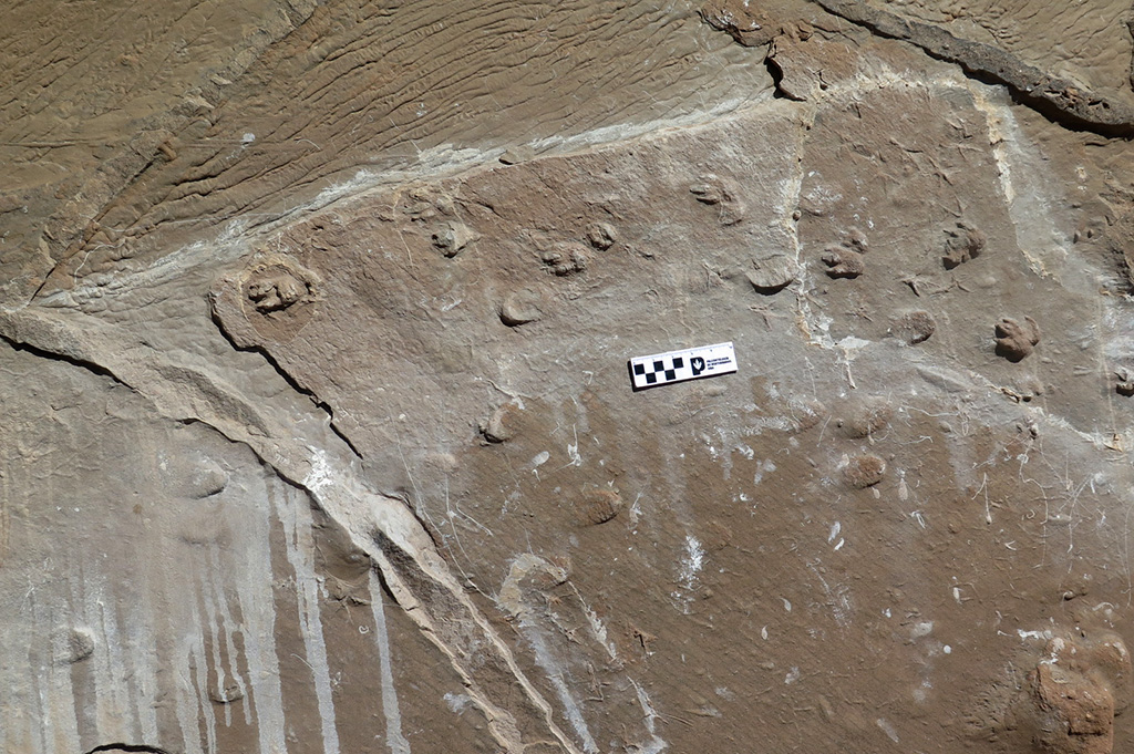 Para afirmar que estos proterotéridos tenían un comportamiento grupal, además de calcular la dirección de las huellas, usaron un método no tradicional. “La línea más aceptada para comprobar que los animales se movían en grupo indica que las secuencias de pisadas sean paralelas, reflejen una misma velocidad y dirección, estén dentro de la misma superficie y tengan tamaños similares, aunque también puede haber huellas más pequeñas que dan cuenta de la presencia de individuos jóvenes”, explica Vera. Y continúa: “Al enviar el trabajo, se nos cuestionó que esto no estaba. En nuestro caso es caótico, las huellas aparecen todas dispersas y superpuestas. Lo que nos salvaba es que están en la misma superficie”.