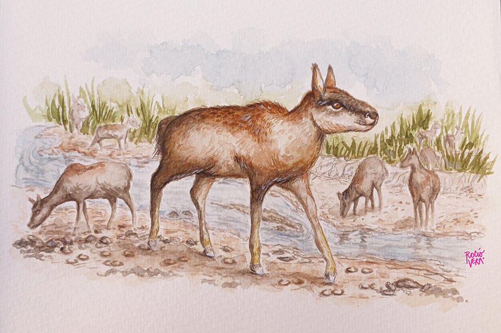 “Dentro de ellos están los proterotéridos de este trabajo: animales pequeños, como una mezcla de mara con ciervo, pero con patas parecidas a las de los caballos actuales”, continúa la científica. Y suma: “Son los segundos animales monodáctilos del mundo, los primeros son los équidos, como los caballos y las cebras. Presumimos que tenían miembros similares, con un solo dígito elongado y una cobertura queratinosa que conforma el casco. Sin embargo, no están relacionados con los caballos porque estaban aislados, es una casualidad. Es lo que llamamos convergencia evolutiva”.