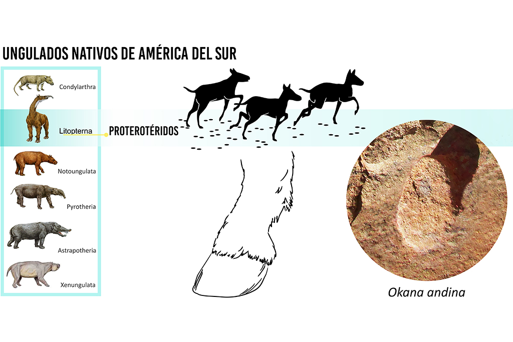 El equipo descubrió una nueva icnoespecie, Okana andina, un tipo de huellas nunca antes visto con las que se pudo confirmar que este tipo de ungulados de Sudamérica vivían en grupos.