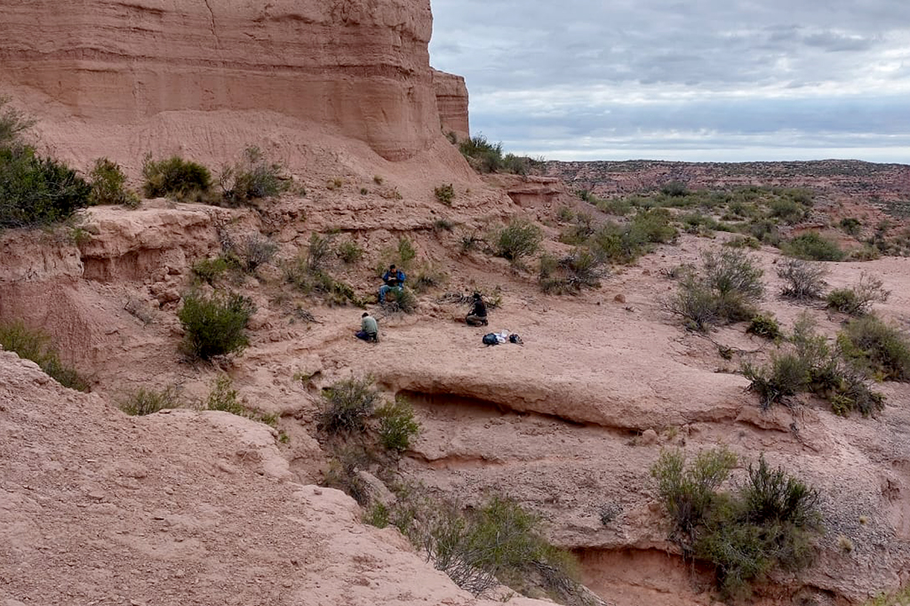 “Son animales muy conocidos en la Patagonia, ahí hay muchos restos y varias especies”, agrega Vera al explicar que eran más diversos en una etapa anterior al del registro estudiado. “Para determinar que fueron ellos quienes produjeron las huellas comparamos con los huesos de las patas y contrastamos con el registro fósil local. Otra línea que usamos son las estimaciones de masa corporal en base a huellas”, precisa. La científica también resalta el papel de Cristo Romano Muñoz, coautor del paper, quien colaboró determinando la geología exacta del lugar. “Realizó un perfil minucioso estratigráfico para ubicar las huellas en tiempo y espacio”, afirma.