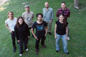 (De izq. a der.) Adelante: Catalina Sierra, Nicolás Flaibani y Alejandra Ventura. Atrás: Constanza Sánchez de la Vega, Nicolás José Lavagnino, Julián Maxwell y Matías Blaustein. Foto: Diana Martinez Llaser