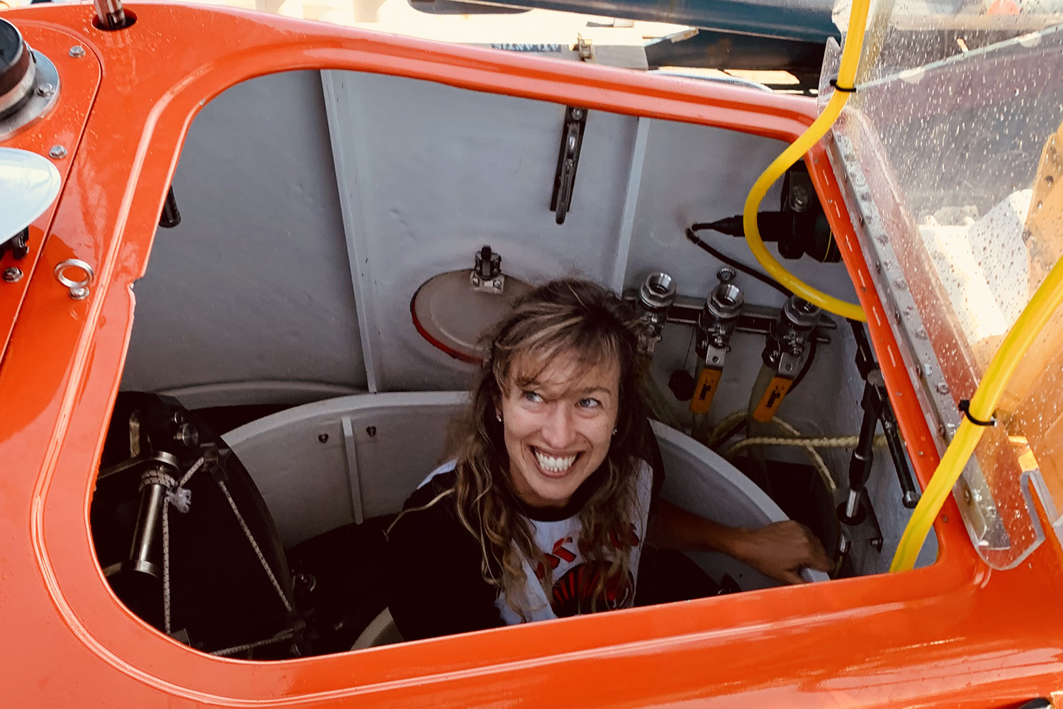 Bravo saliendo del Alvin, el minisubmarino con el que descendió más allá de los 4.900 metros de profundidad en Alaska.